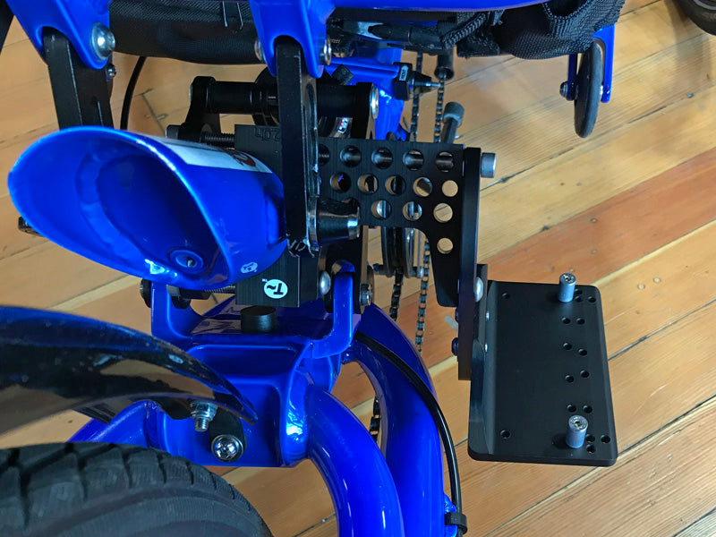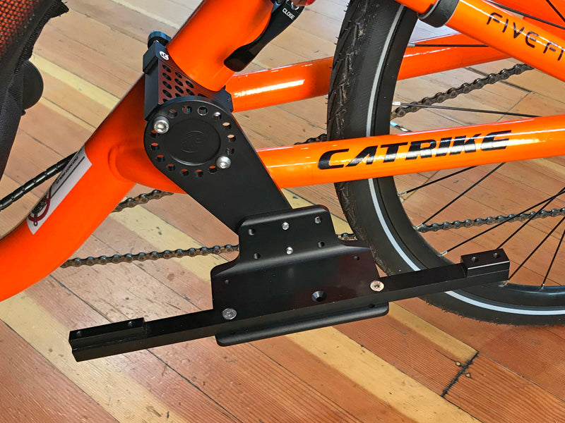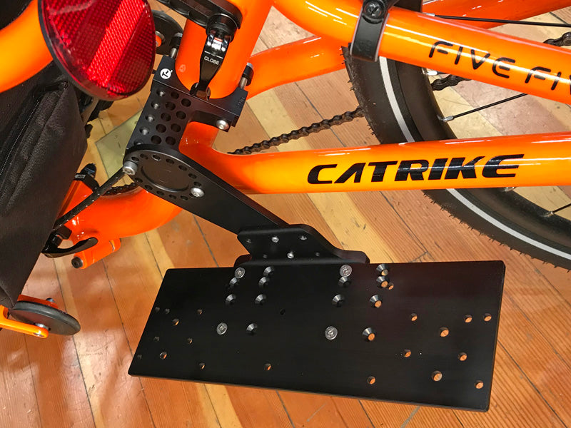 This mount allows you to mount a battery under the seat and close to the centerline of your Catrike. This is the very best place to mount a battery, because it's low and centered for better stability. Mounting heavy things like batteries up high over the rear wheel often leads to handling issues. This mount was designed to solve that.