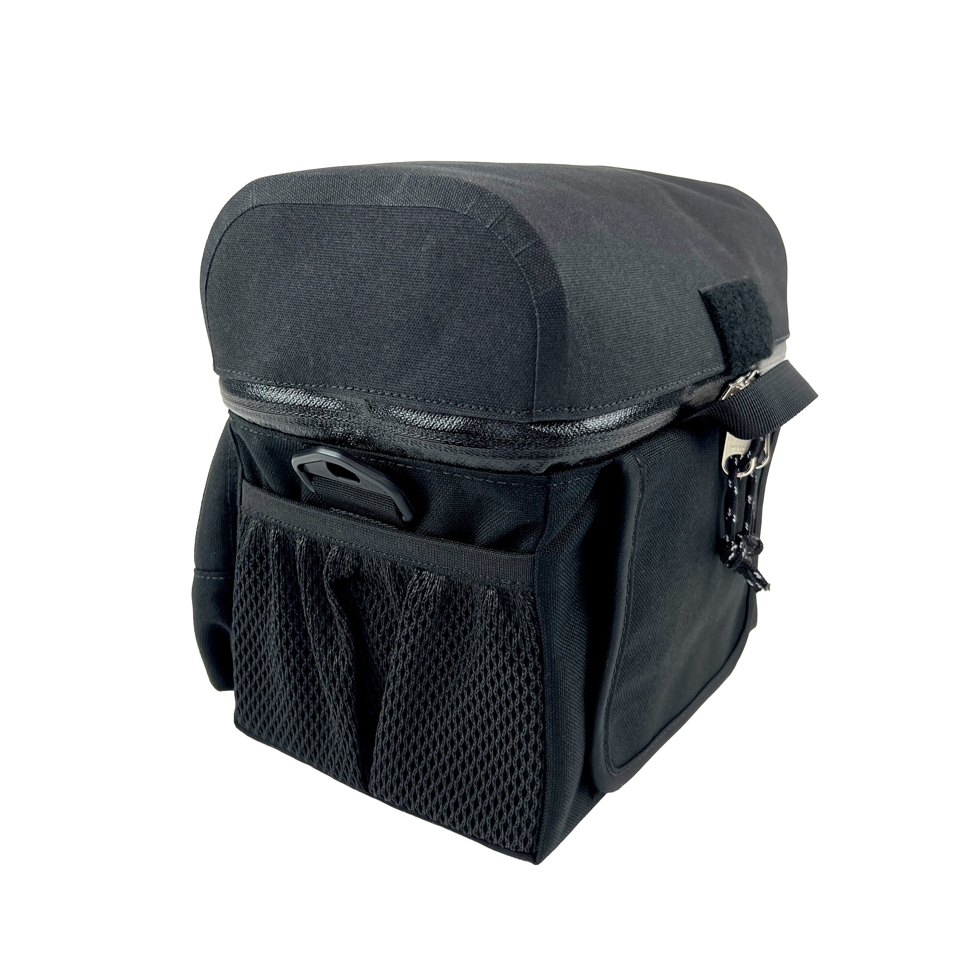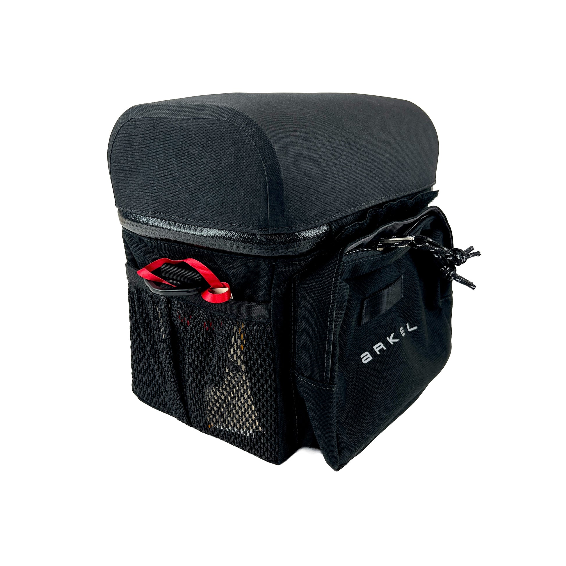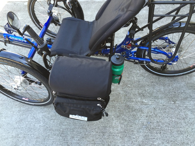 Arkel is known for making things really well and really tough. They have been making expedition class equipment for years, and these Arkel bags certainly follow that tradition. This bag is completely waterproof. It features one big internal pocket, one small waterproof outside pocket, and a pair of external mesh pockets. These bags now include a set of our super short, close-in mounts that bring the bags closer by 2.25in (57mm). The TerraCycle mounts have proven to be so popular we made arrangements with Arkel to get the bags without the standard long clamps, so we could make a bag+clamp SeatSide Mount combo for a better price. The bags come with shoulder straps. It's easy to add padding to the strap if you have any kind of sheet foam.