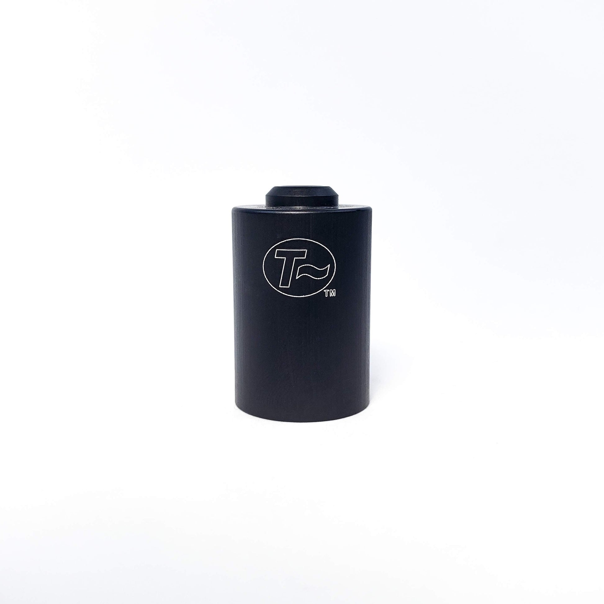 "Well now, that's a clever little thing!" We tend to hear that a lot about this little mount. It replaces the special bolt on the fixed (non lever) side of your bar end shifter and adds a nice little spot to attach smallish things like motor controls, cycle computers, and electronic shifter buttons. The outside diameter is 7/8" (22.2mm), so all kinds of standard bike things can go there. We make different versions for Shimano, Microshift, and SRAM shifters, because, of course, they are all different. We also make them in short and regular lengths, to match what you need to put there. They are machined from a solid bar and hollowed out for lightness and in case you wanted to put something in them. (Hint: our Handlebar Accessory Mount Clamps just happen to fit perfectly inside the Regular length). A plastic cap is included in case you only want to attach things on the outside.