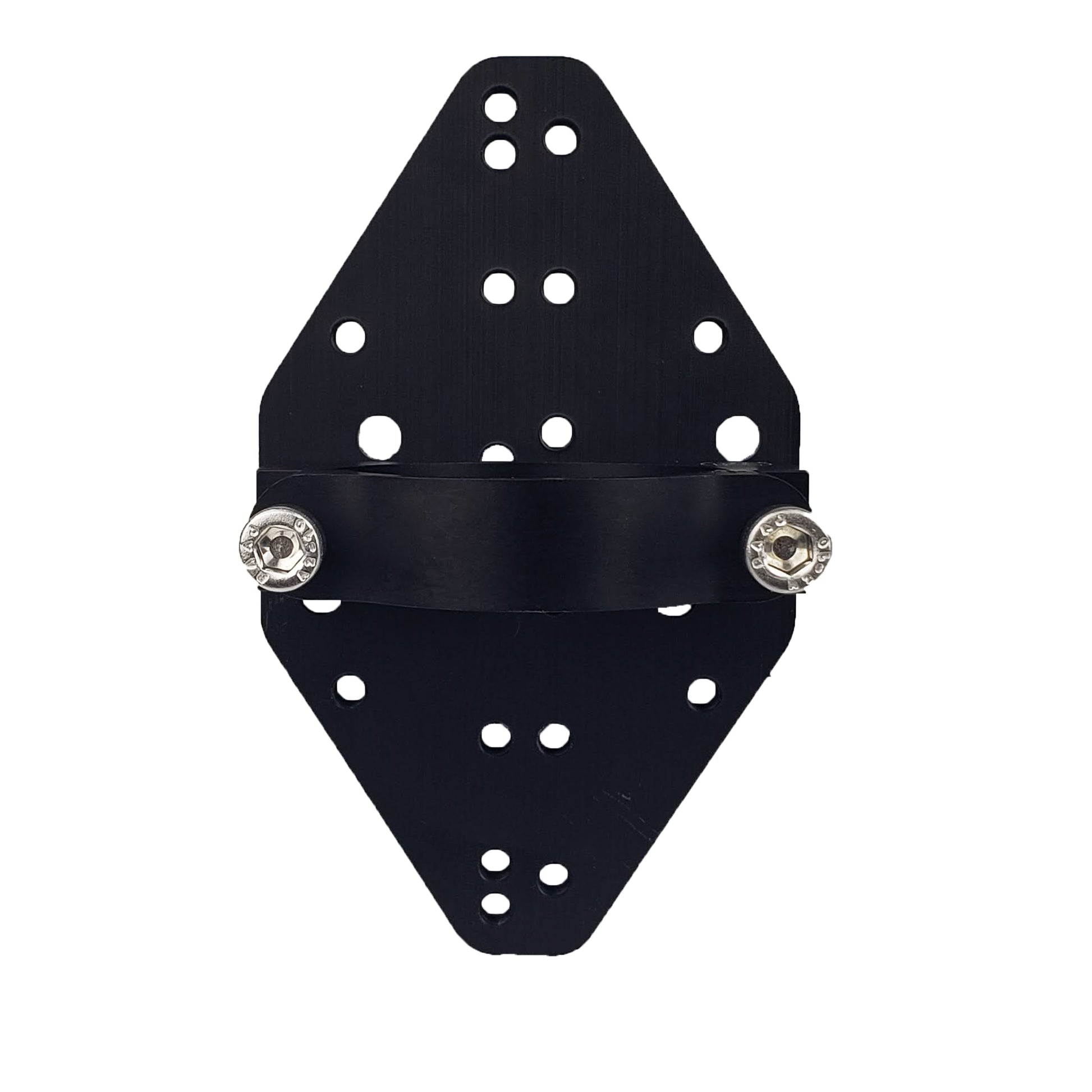 • Mounts are machined from 6061-T6 aluminum and black anodized. Frame clamps are 5/8 inch (16mm) wide. The frame clamping bolts are m6 stainless steel, so they are able to support batteries up to about 15 lbs (6.8Kg). Battery mounting holes are m5x0.8, threaded through 0.25 inches (6.35mm) mounting plate.