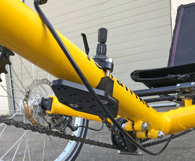 • The Frame Clamps are made in a variety of sizes for almost every tube used on recumbent bikes and trikes, so it is usually possible to install this mount on many trikes as well as some bikes. The mount can go on the top, bottom left, or right side, or both sides, depending on your needs.