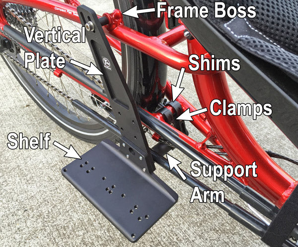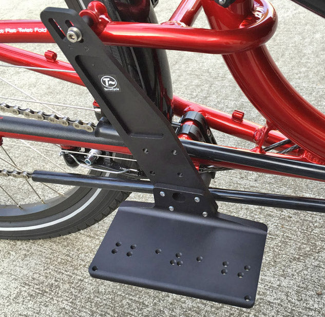 Batteries are heavy, so it's best to carry them down low and in a place that won't affect handling. A rear rack or seatback bag are not good solutions- the battery is up higher than it should be, and it tends to be awkward when it's time to fold or transport your trike. This mount is designed to have the rigidity to securely hold your battery, while not in any way interfering with your seat, suspension, rear rack, or the ability to fold your trike. An electric drive is a big investment, and how to properly hold the battery is an important consideration. It was not easy to design this mount, there are not a lot of places a battery can go where everything works.