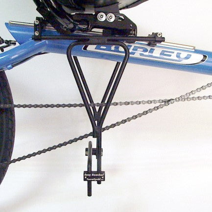 - Recumbent riders all know that the best place to keep a pannier bag is under the seat. This position maintains your bike's stability and allows you to carry heavier loads with ease. Another big bonus: you have easier access to stuff you need. Our Easy Reacher Racks are legendary for their carrying capacity and year after year durability—for touring or commuting, on pavement or off. Expedition tough T-Cycle racks are sought out by knowledgeable recumbent riders everywhere. They have toured back and forth across many continents without incident. All USA made, high strength, lightweight aluminum, beautifully machined rack arms, tig welded pannier rails, and stainless steel fittings.