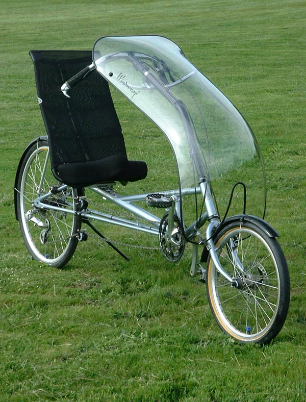 The WRNS Long Wheelbase Fairing is a turning fairing designed for long wheelbase bikes with pedals that aren't very low. It fits bikes with Chopper Bars and T-Bars. The fairing is slotted to fit on and turn with the front wheel and provides coverage from your feet to above your handlebar. It's shaped with space around the crank for your feet to move comfortably without being bulky or allowing the weather to creep in. This fairing is designed to provide great aerodynamics and good foot clearance, with the main curve of the bubble shifted up slightly, compared to the WERX fairings. Get it tinted for extra sun protection, or get it clear. Either way, the WRNS Long Wheelbase Fairing is going to make riding your 'bent that much sweeter.