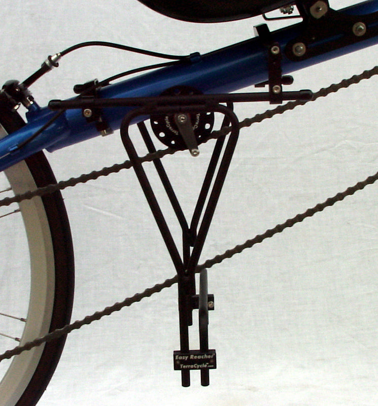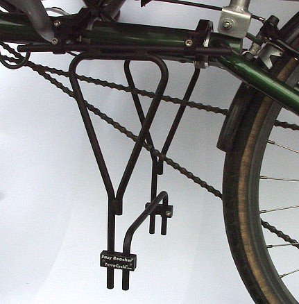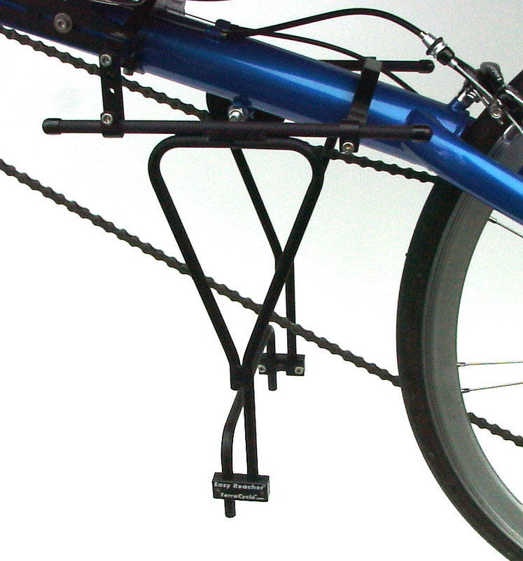 Specifically designed for Volae and Haluzak bikes, the ultra-durable T-Cycle Volae/Haluzak Easy Reacher Rack is custom made and comes much stronger than an ordinary rack. Mounting arms are custom CNC machined for each main frame tube and chainline with black anodized TIG-welded rack arms. Racks are further customized with pannier rail leveling clamps specific to the angle of your main tube. Once you see how beautiful these parts are you will appreciate the all USA made T-Cycle rack. No other rack system is anything like it.
