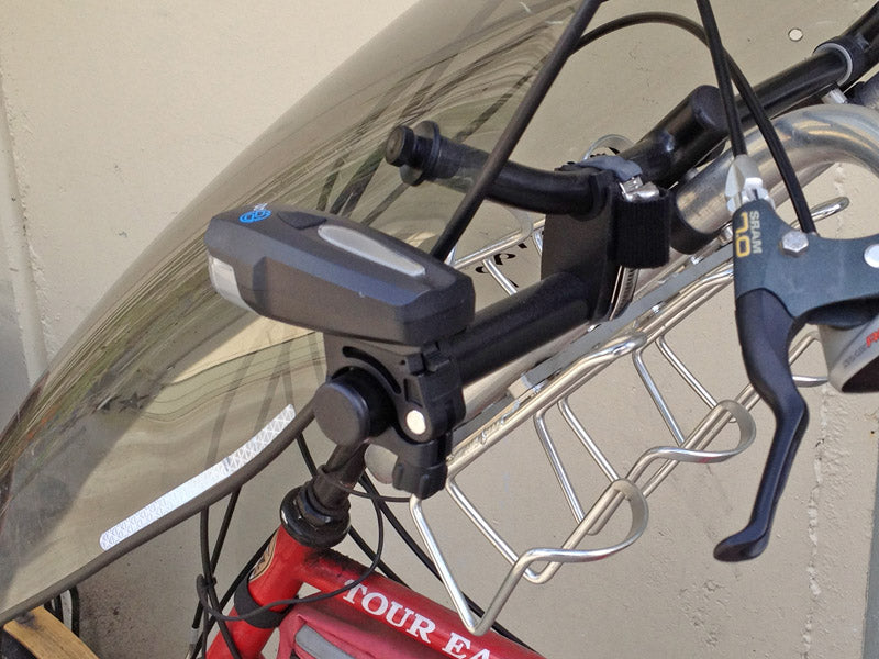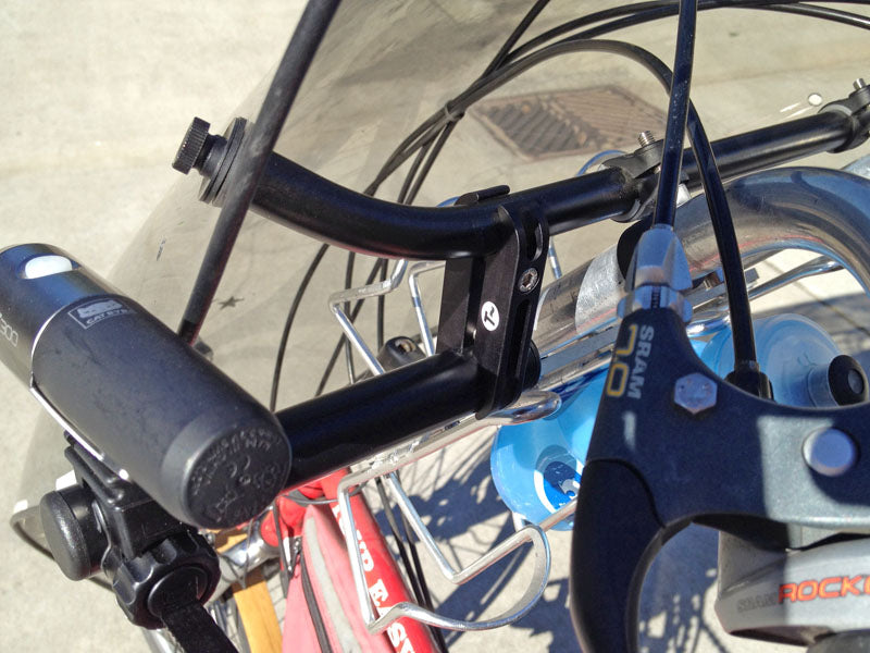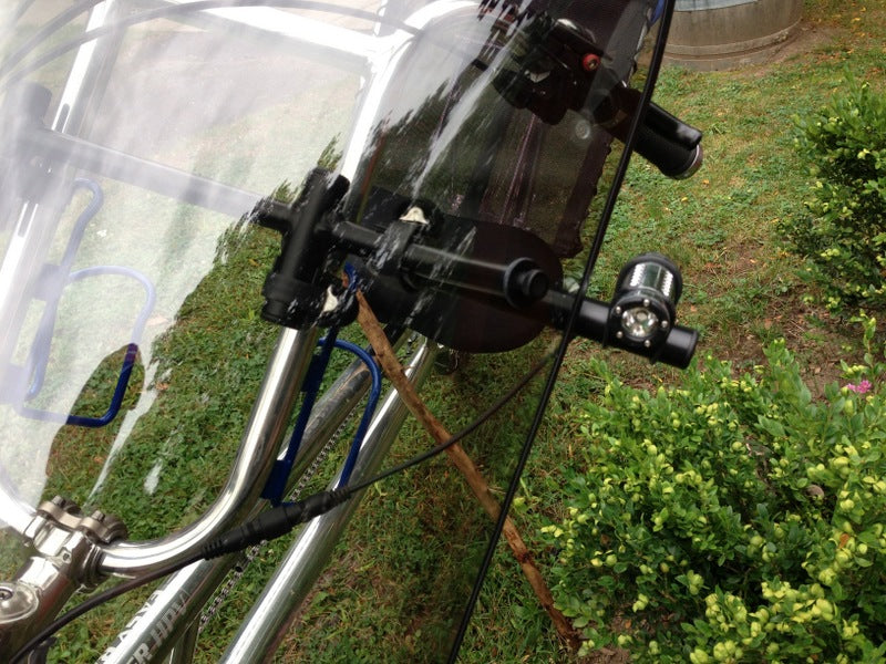 A Light Mount for Long Wheelbase Fairings lets you attach lights directly to the upper mounting arm of your WERX and WRNS fairings. The mount clamps onto the mounting arm and provides 1.5" of space for attaching lights. This mount allows for left side, right side or dual side light mounting. Current product is the CNC machined dual bar clamp shown in the main photo. Some of the photos show the original snap block and band clamp mounts.