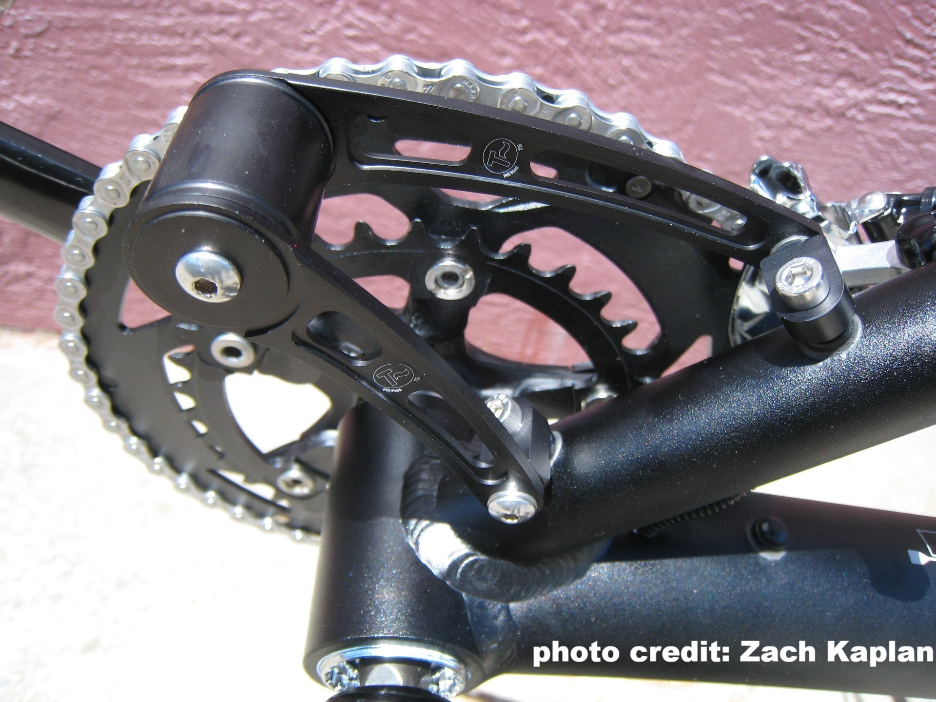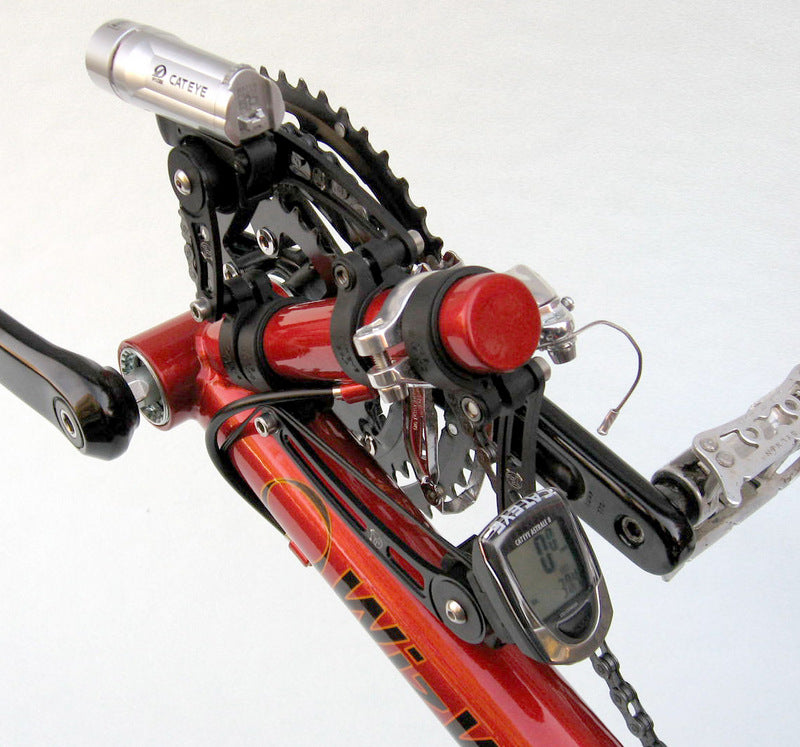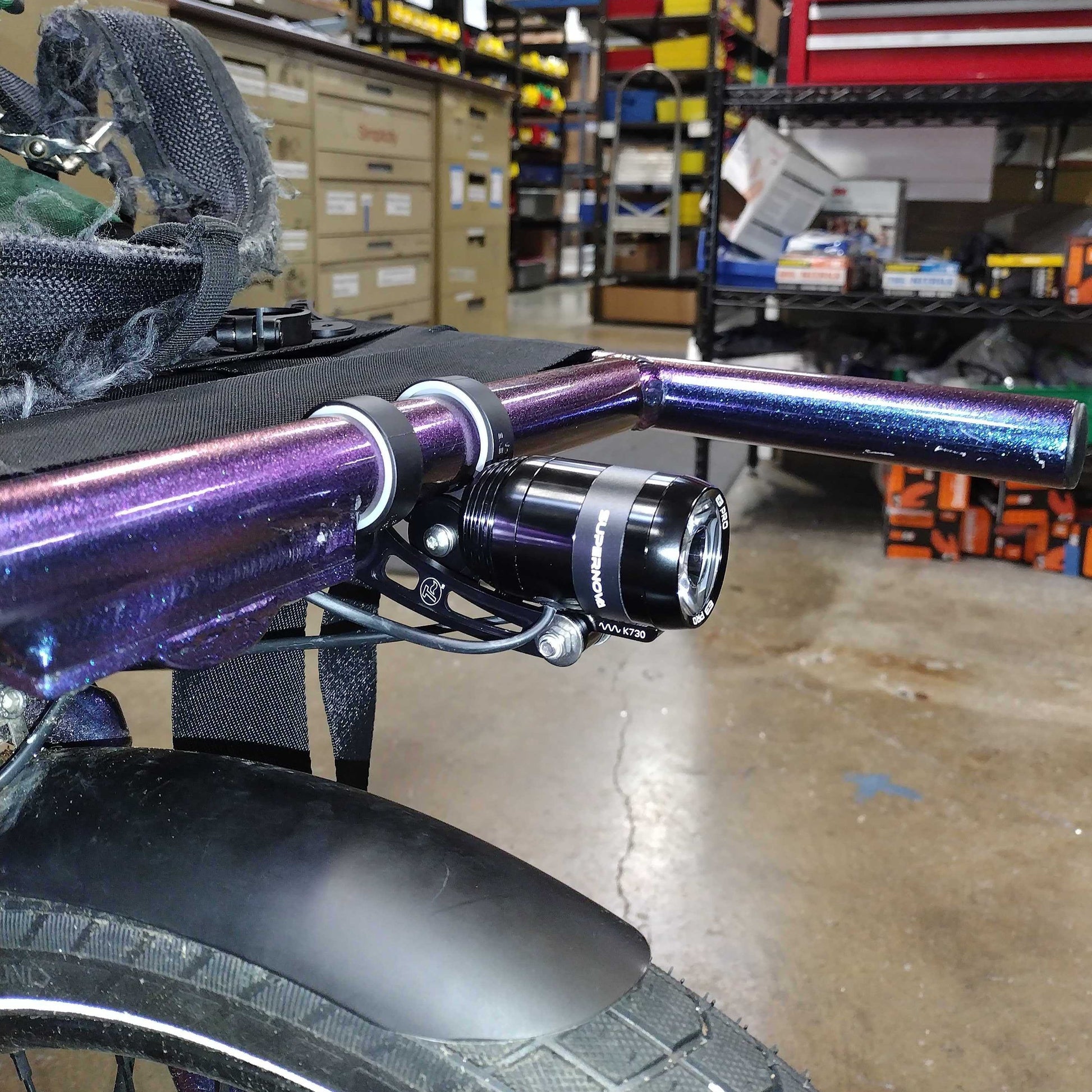 If you are just attaching it to a single, unobstructed tube, it's super simple. We use Cateye brand plastic band clamps for attachment. We modify them to add a metal bushing to move the mounting point out to half the width of the Accessory Mount's mid tube. You simply snap the Cateye clamps around the tube on your bike and attach the ends of the Accessory Mount arms to the Cateye clamps. If there are things in the way, you can adjust the arms on the Accessory Mount to work around them.