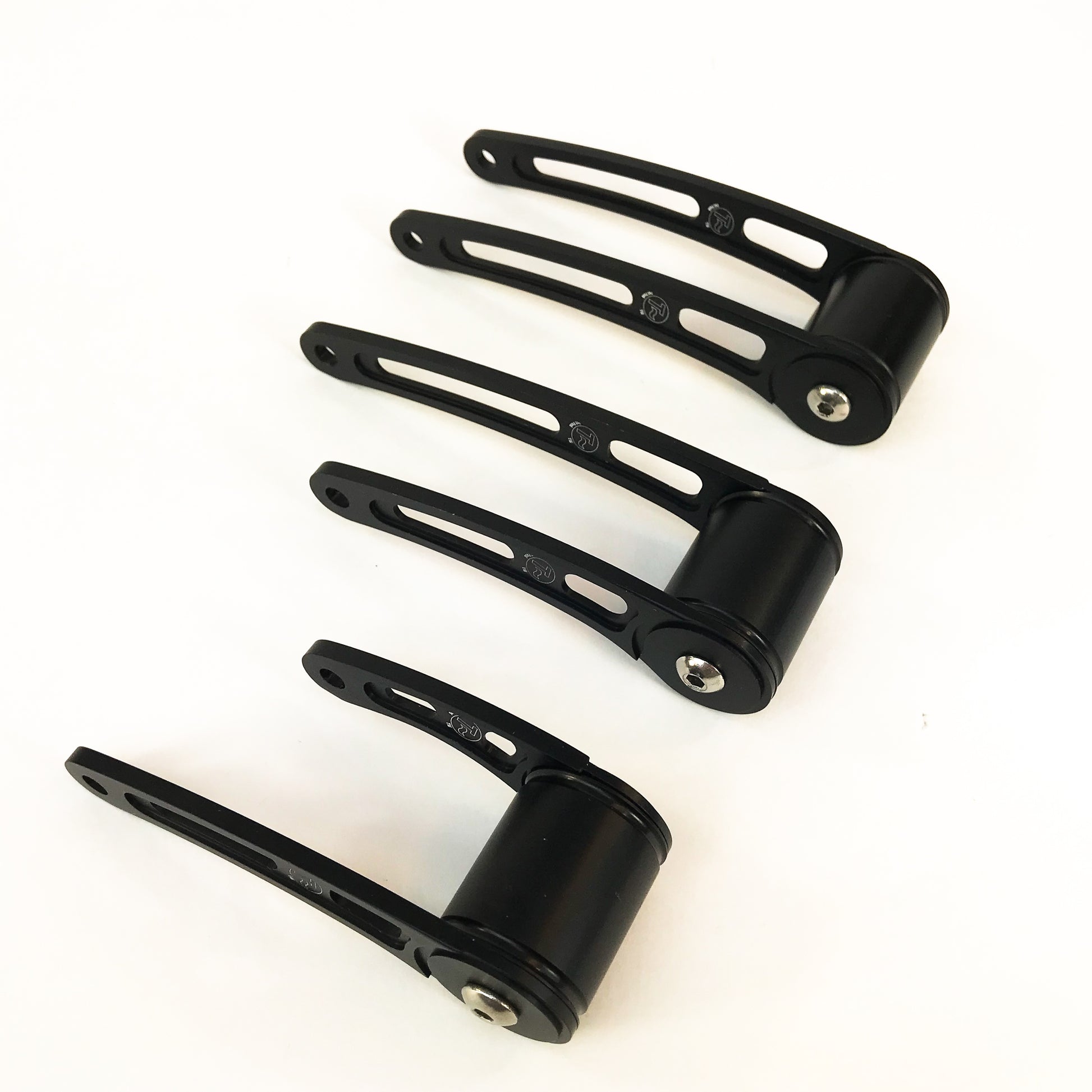 - A note on arm lengths: For most recumbent applications, we recommend the 50x75mm or 75x100 arm combinations. The different length arms give a lot of versatility. If you want more room, or to get things further away from the frame, go for the 75x100mm version. On upright bicycle stem mounting applications, we recommend the 75x100mm or 100x100mm arm combinations for maximum range. If you are mounting on a fork blade, we recommend the 50x75mm setup. For some Highracer Recumbents, the 100x100mm combination allows you to put a light down low and right in front of the BB shell.