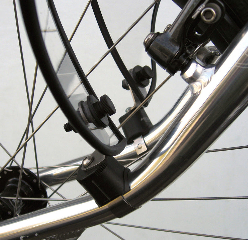 The WERX Long Wheelbase Mount is the classic Windwrap design for mounting fairings to long wheelbase bikes. A popular companion to the WERX Long Wheelbase Fairing (get the duo in the WERX Long Wheelbase Fairing Kit), this hardware mounts with stainless steel lower mounting arms, (optional Minoura clamps available for forks without fairing bosses) and lightweight welded aluminum that attaches to your handlebars. Vibrations are isolated at the top and bottom to make your ride smoother and view clearer. The kit includes everything you need to mount today!