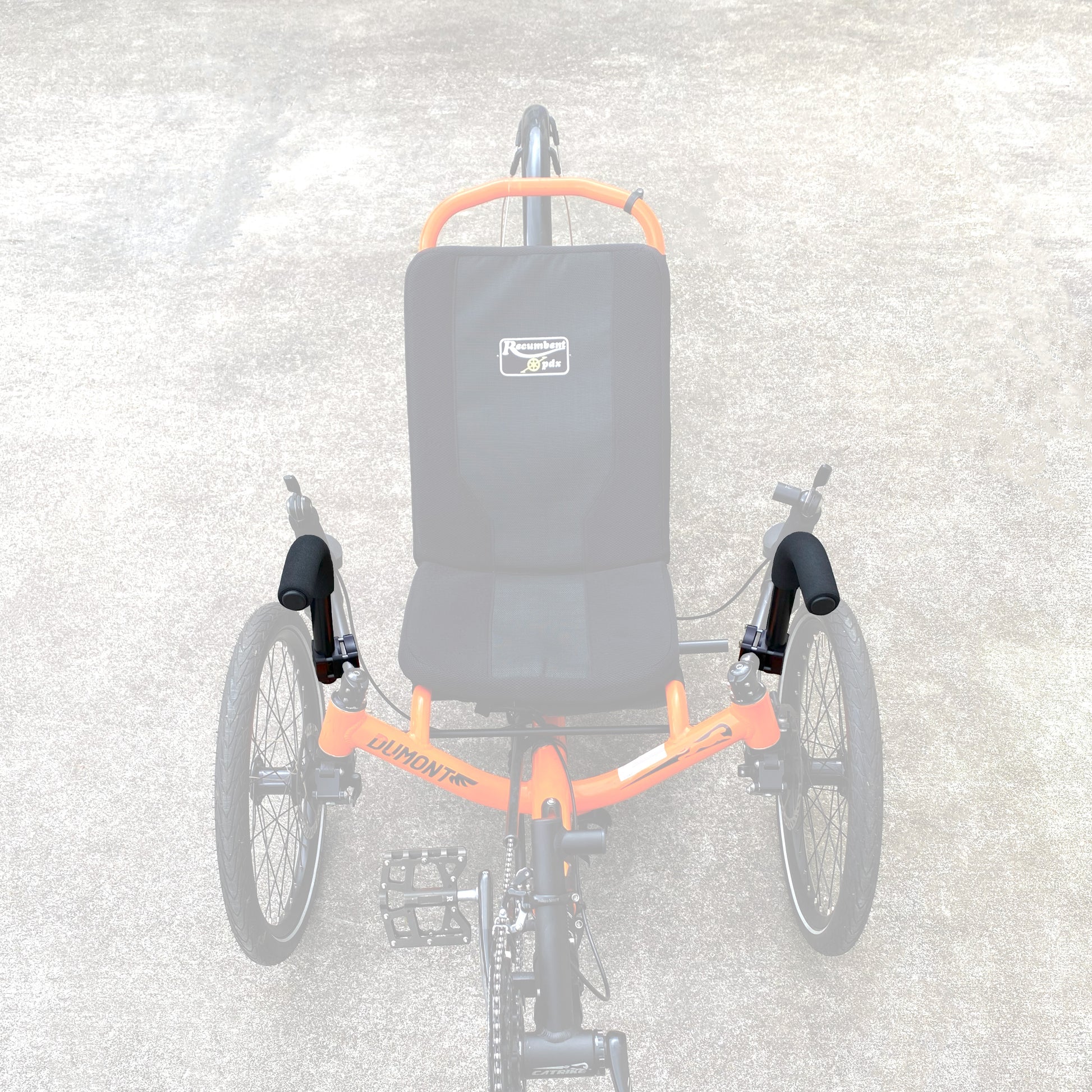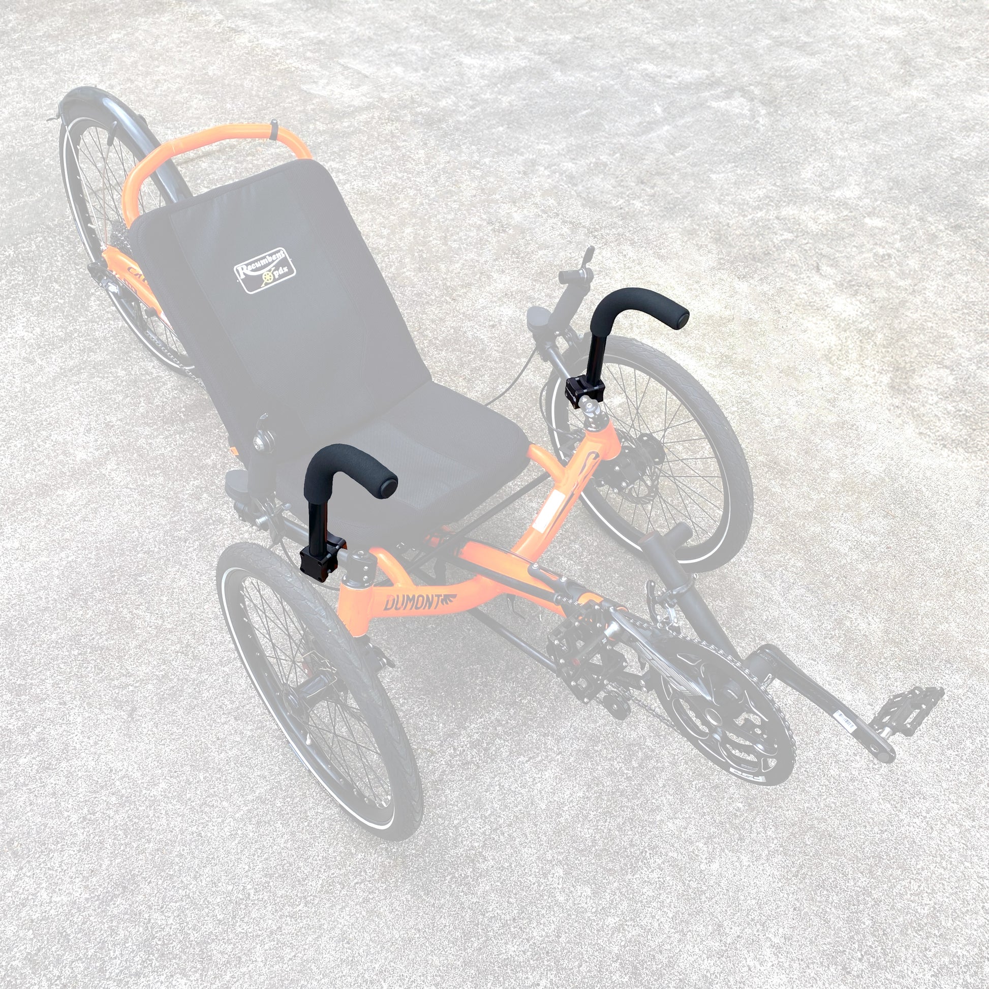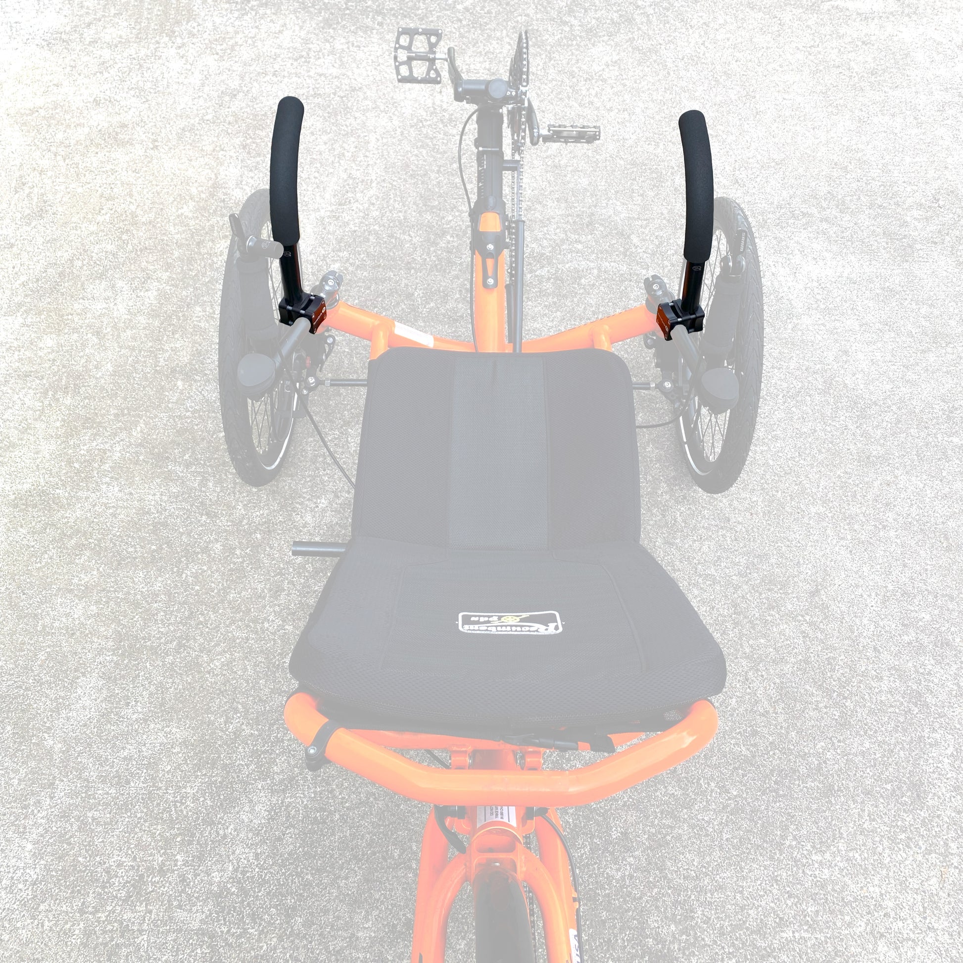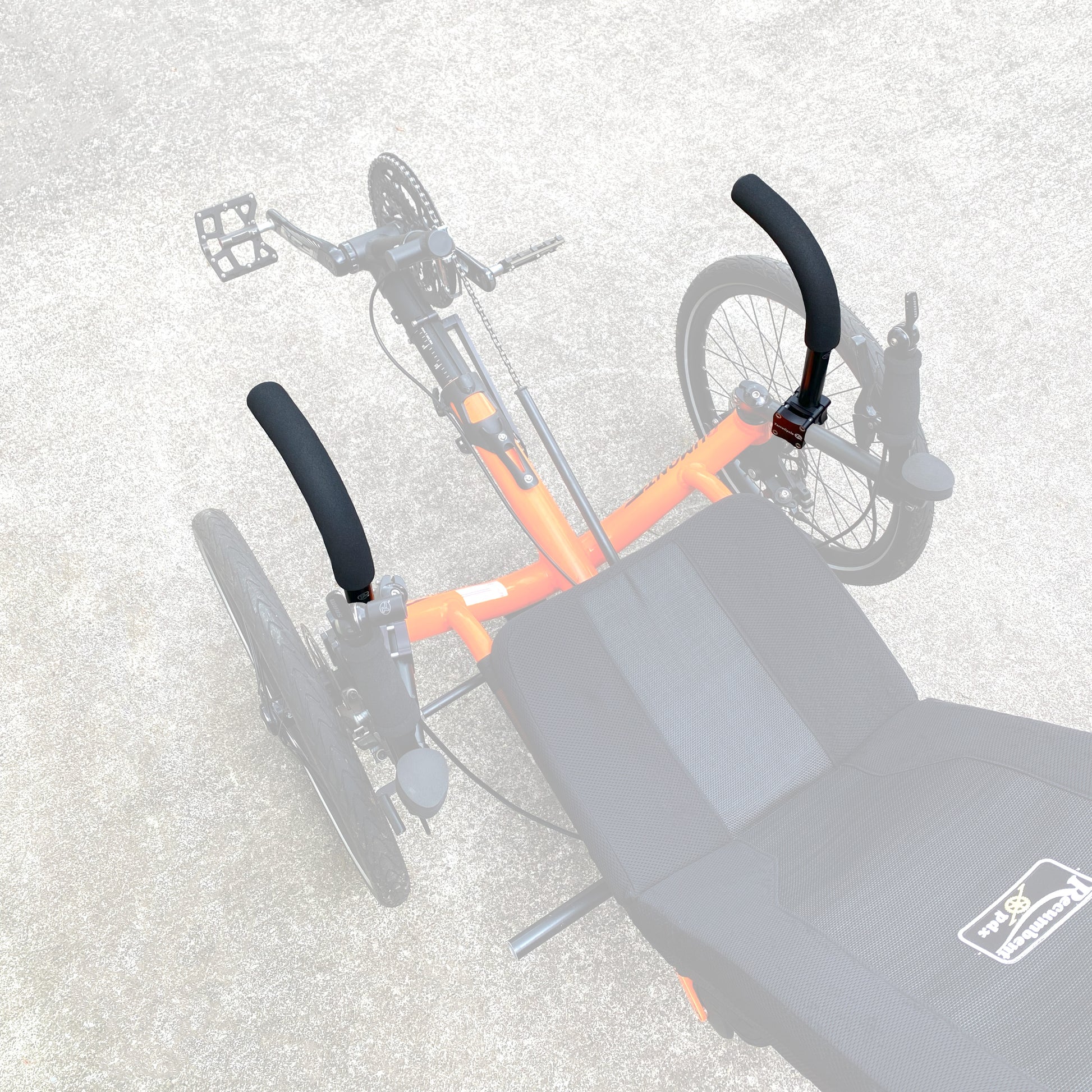 If you have a Catrike, and need a little help getting in and out, these are the Assist Arms for you! Designed after extensive research with real people in real world situations, these arms provide the forms of support you need to safely and comfortably get on and off your trike. The smooth, curving arms provide multiple gripping positions and provide a nice sized area to rest your hands. The arms are centered over the front wheels. They extend forward so they are easy to reach when you are first getting on, and extend back towards you when you're seated to help you start to get up. The front to back configuration also means there's no twisting of hands or wrists required- your grip is always natural and comfortable. The custom low profile clamps provide optimal fit.