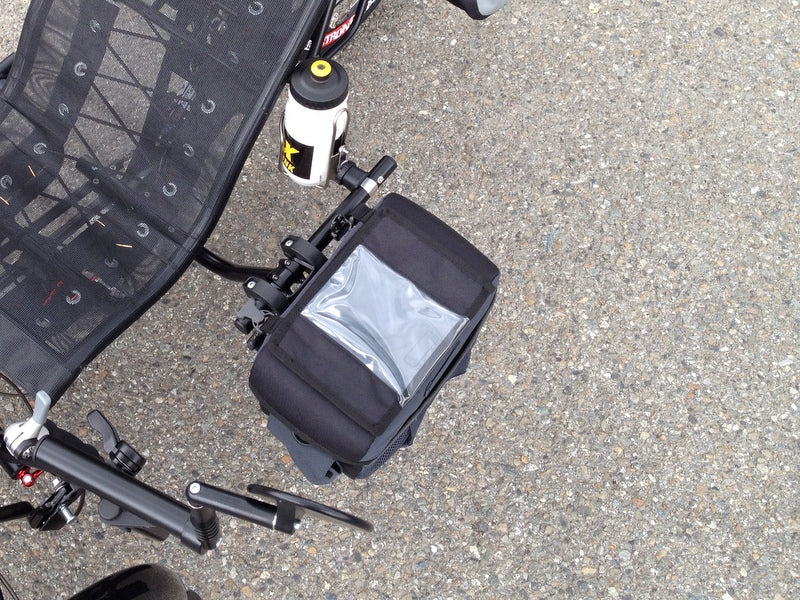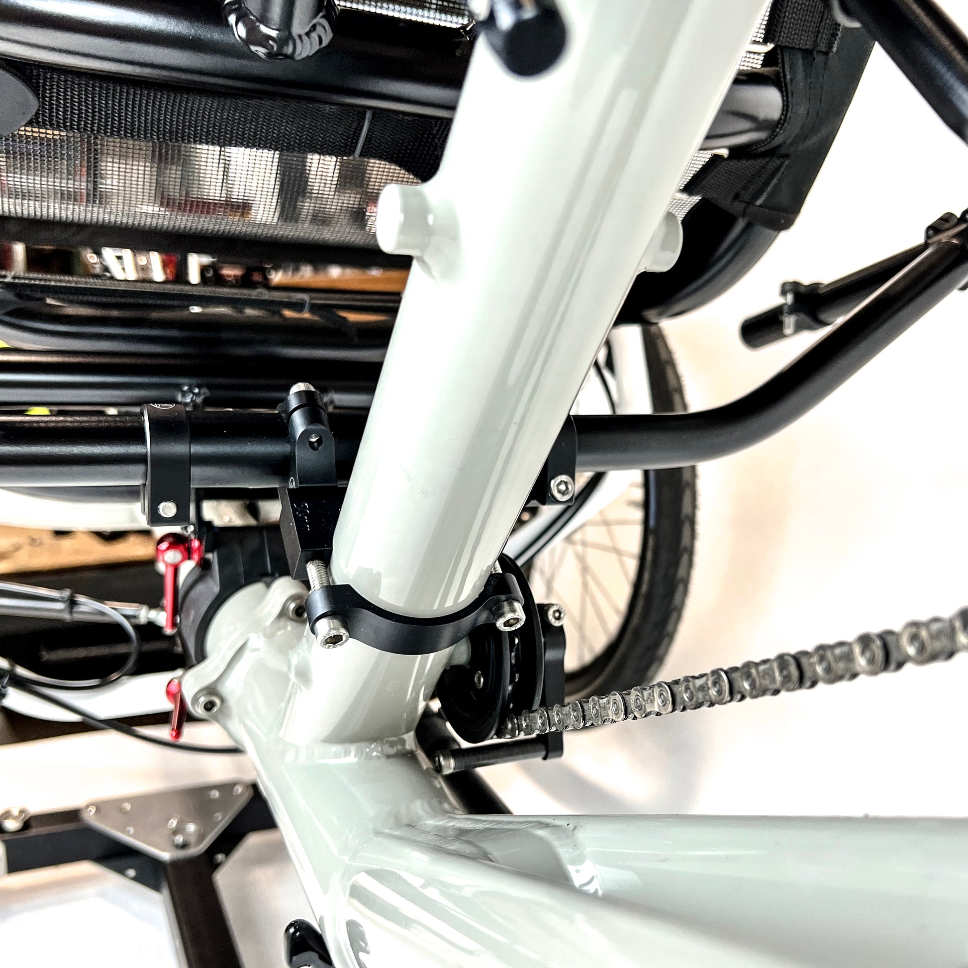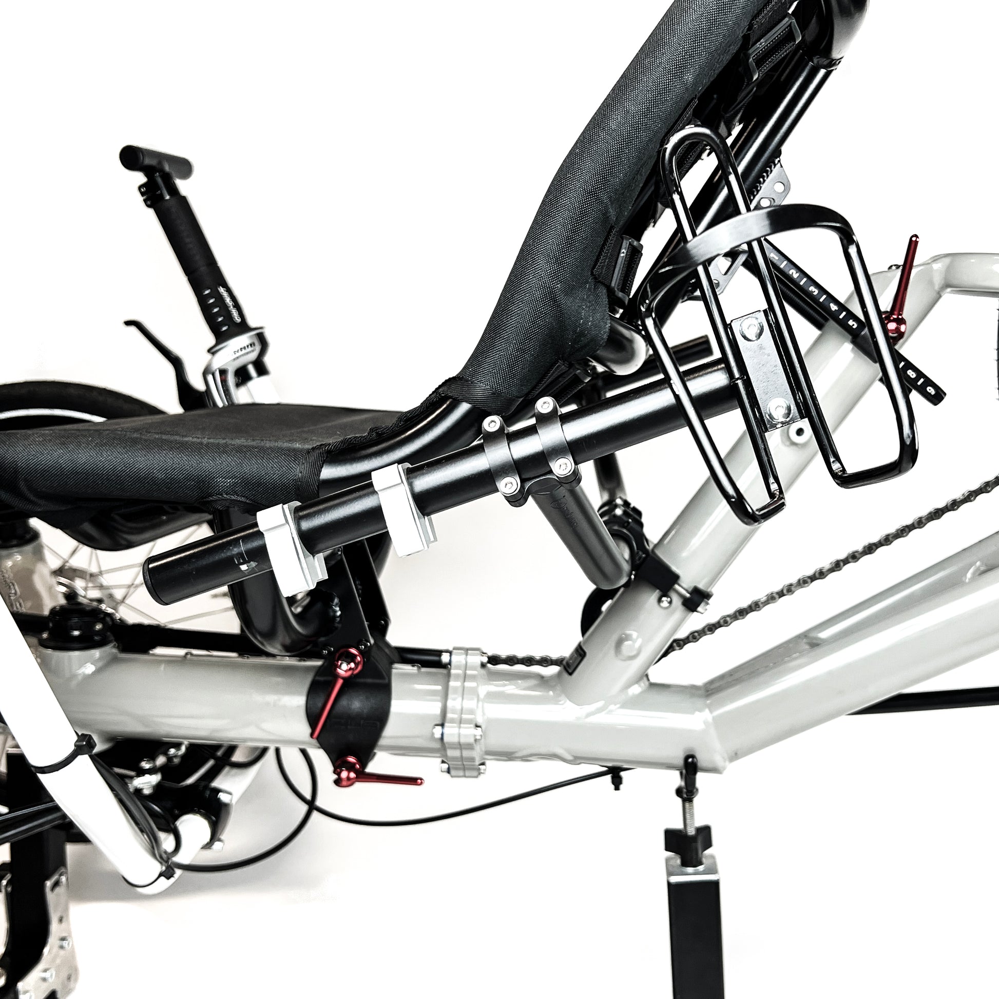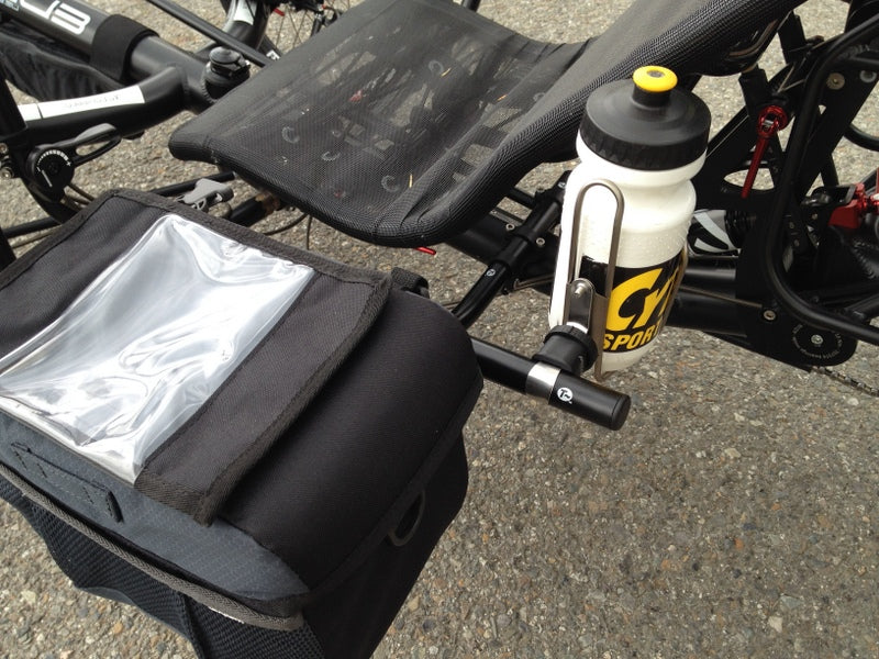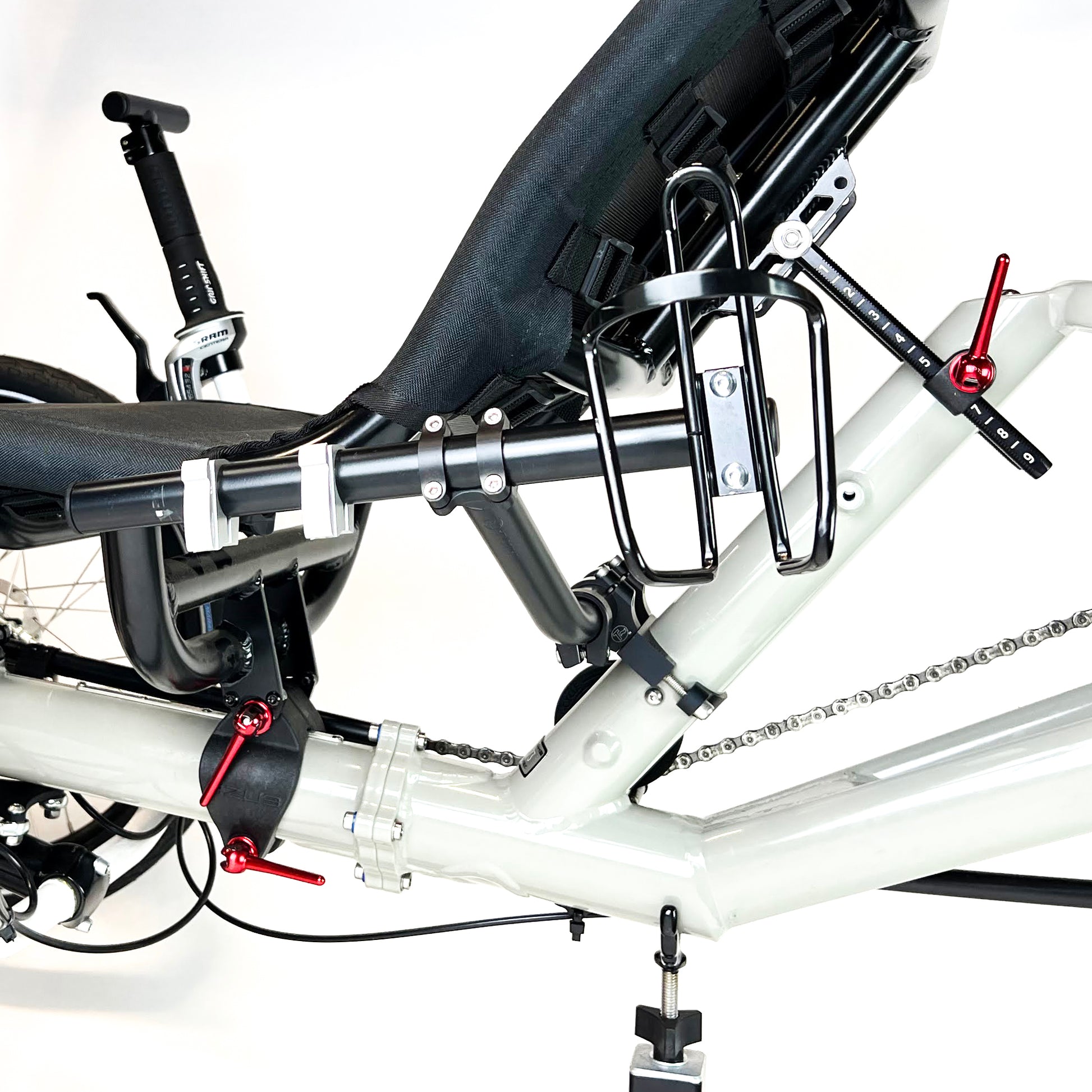 One of the great things about triking is how nice it is to have everything right at hand as you roll along. With a SeatSide mount, you can have all sorts of things close at hand. The Azub SeatSide Mount lets you carry bags, water bottles, cameras, all sorts of things, right by your side. Snacks, phones, lip balm, you name it, now you can keep it all within reach while riding. This mount attaches to the main tube behind the seat. The SeatSide arm can be attached on either side, or both if you wish. The OneBolt option allows for quickly taking the mounting arm on and off. If you plan to go to a double sided mount in the future, order the OneBolt Release version for a super simple later upgrade.