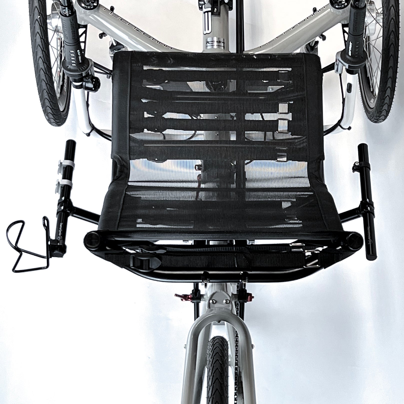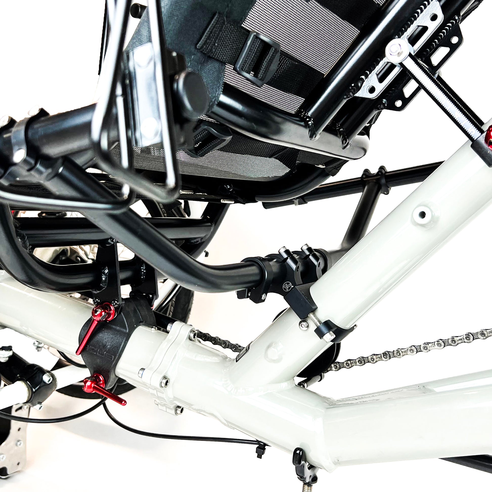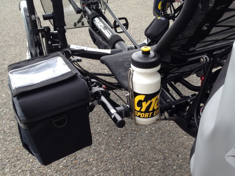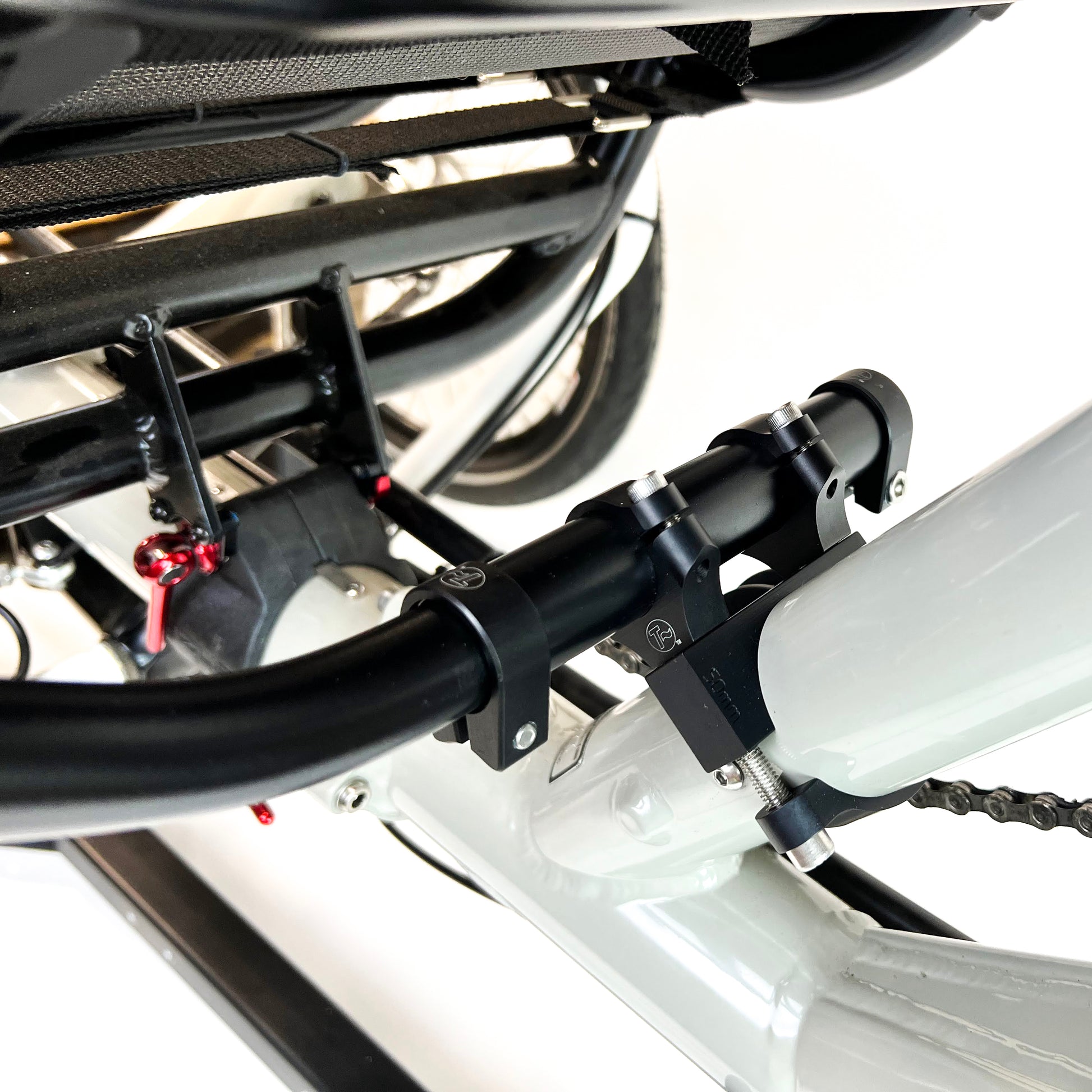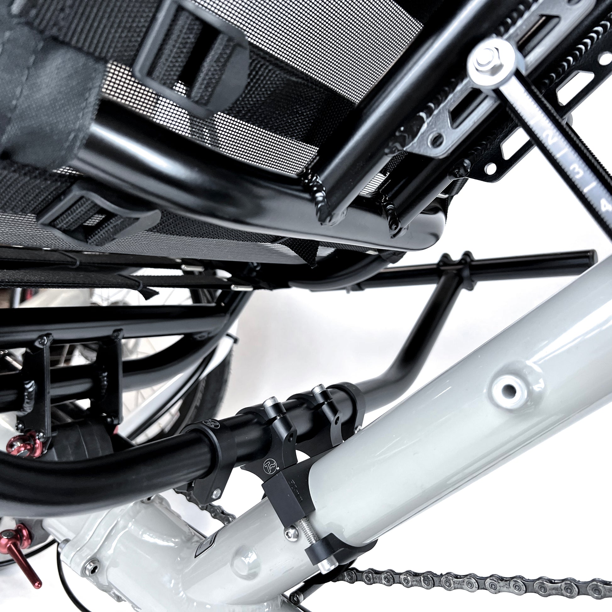 One of the great things about triking is how nice it is to have everything right at hand as you roll along. With a SeatSide mount, you can have all sorts of things close at hand. The Azub SeatSide Mount lets you carry bags, water bottles, cameras, all sorts of things, right by your side. Snacks, phones, lip balm, you name it, now you can keep it all within reach while riding. This mount attaches to the main tube behind the seat. The SeatSide arm can be attached on either side, or both if you wish. The OneBolt option allows for quickly taking the mounting arm on and off. If you plan to go to a double sided mount in the future, order the OneBolt Release version for a super simple later upgrade.