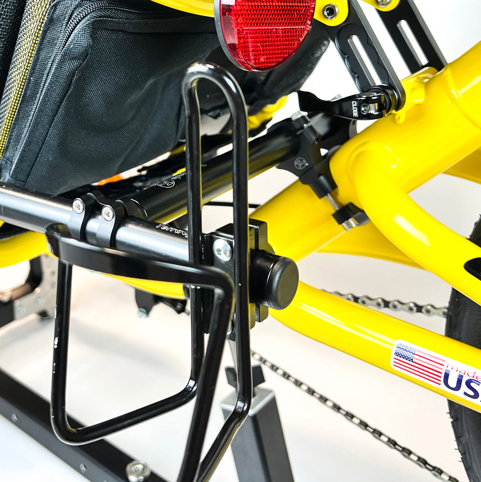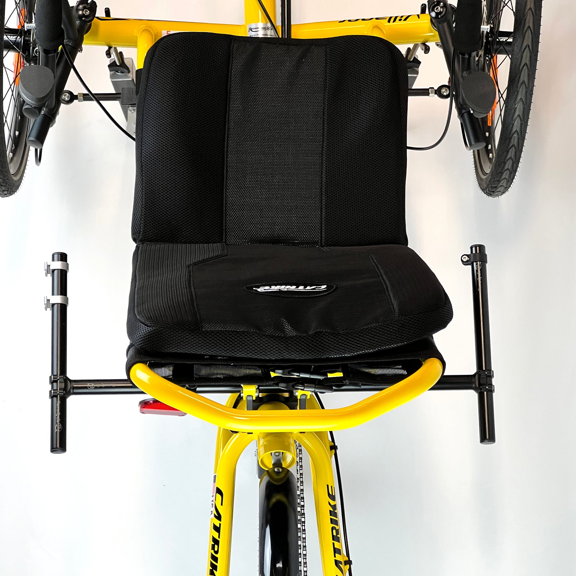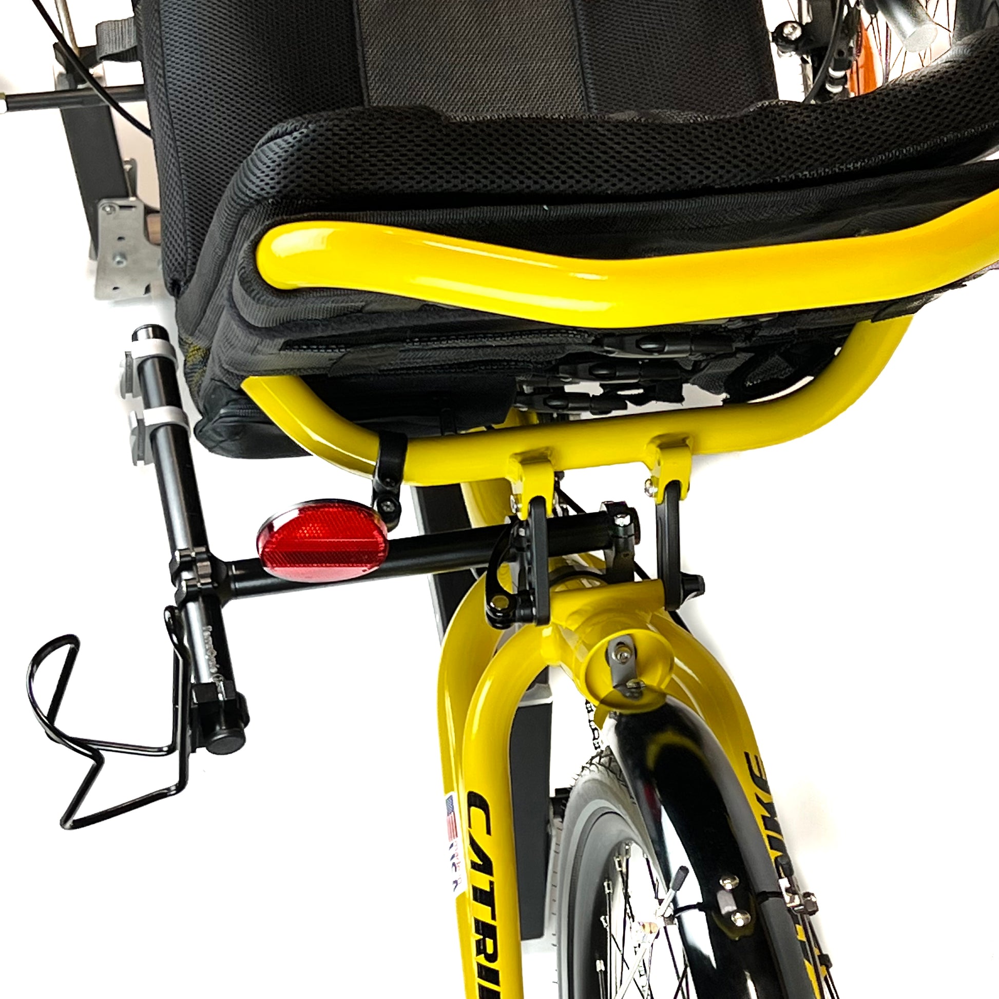 • Fits most Catrikes. There are some limitations on some models, see above or email for details. For instance, the suspended trikes have so much going on with the main tube behind the seat that there is not much room to attach things.