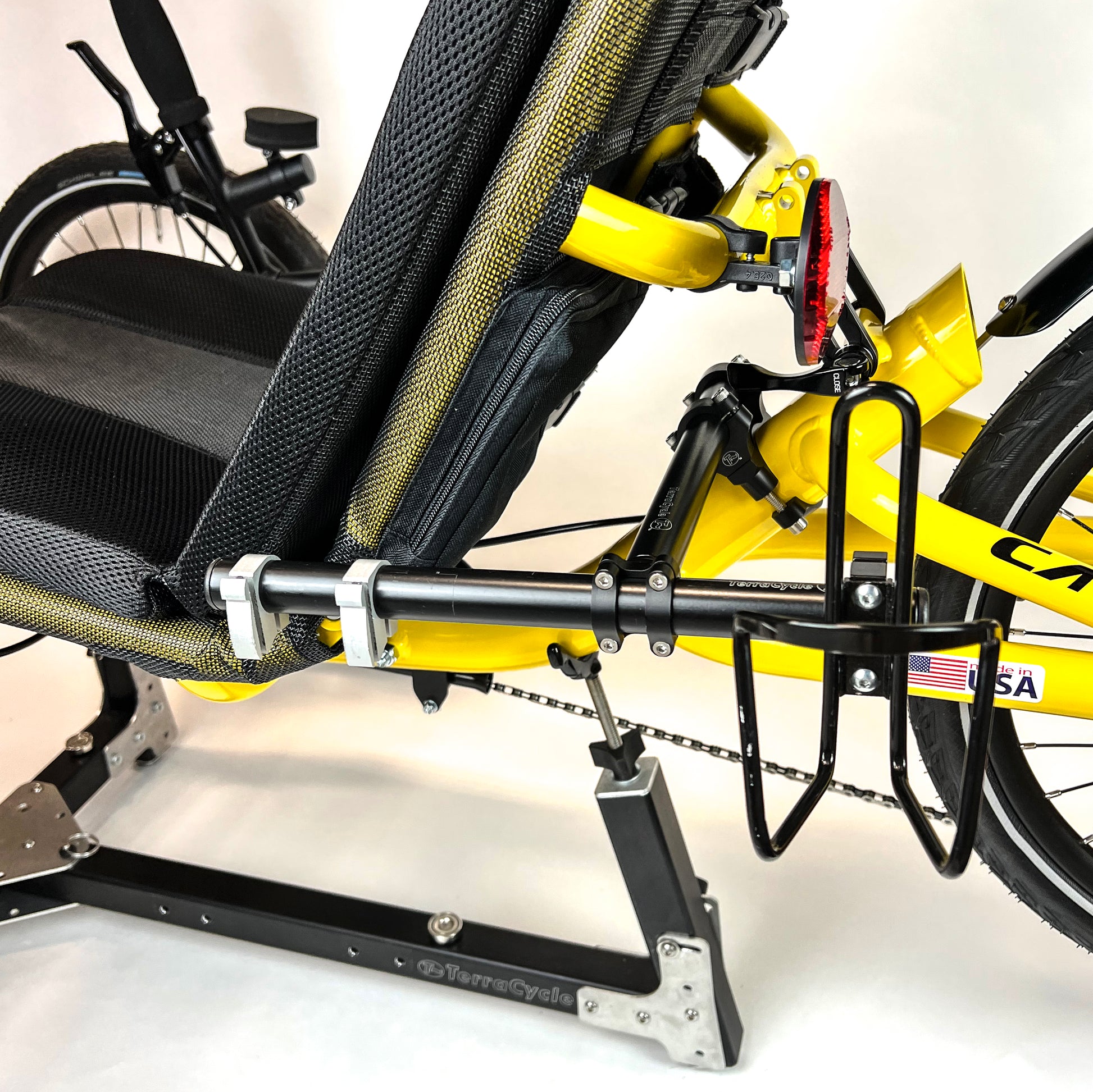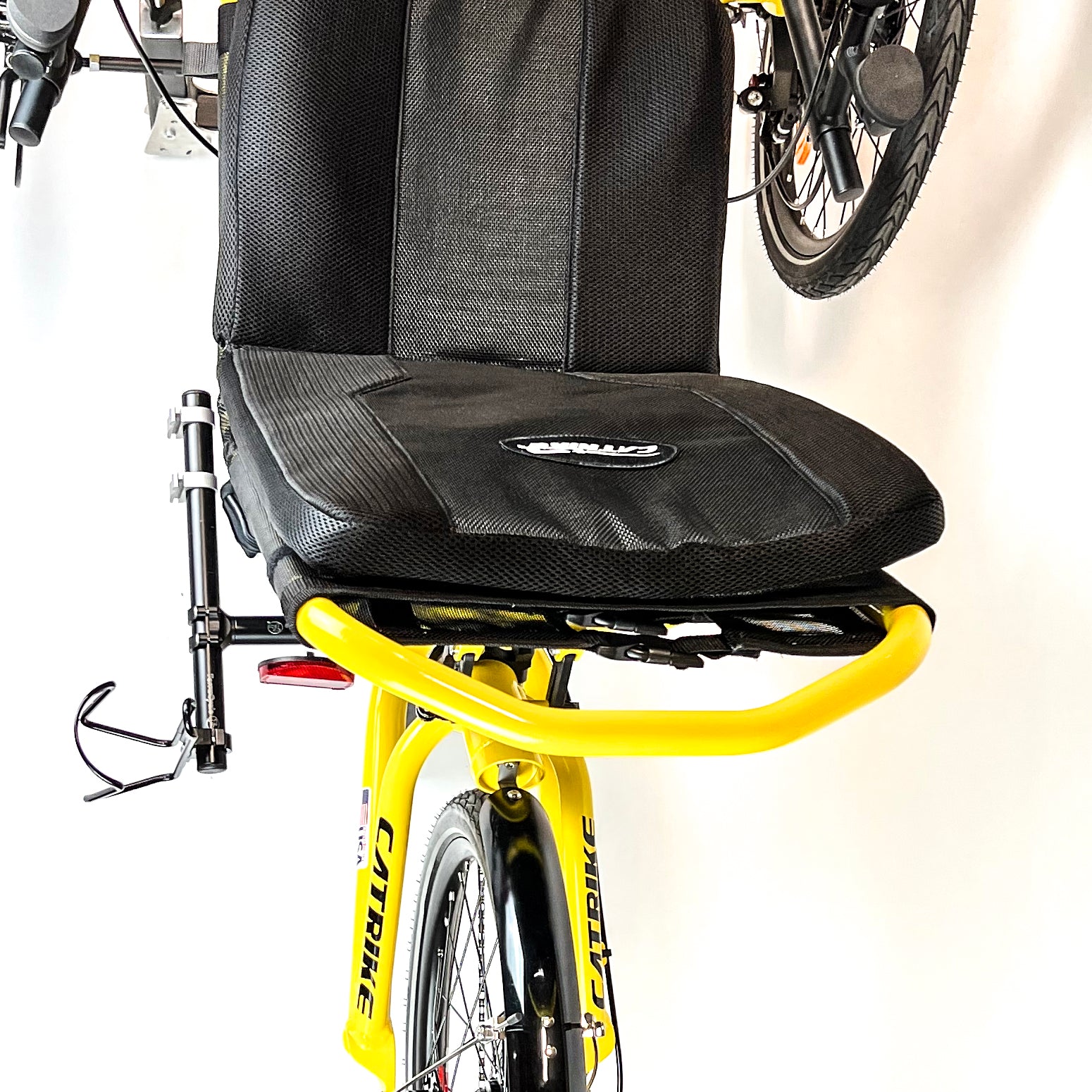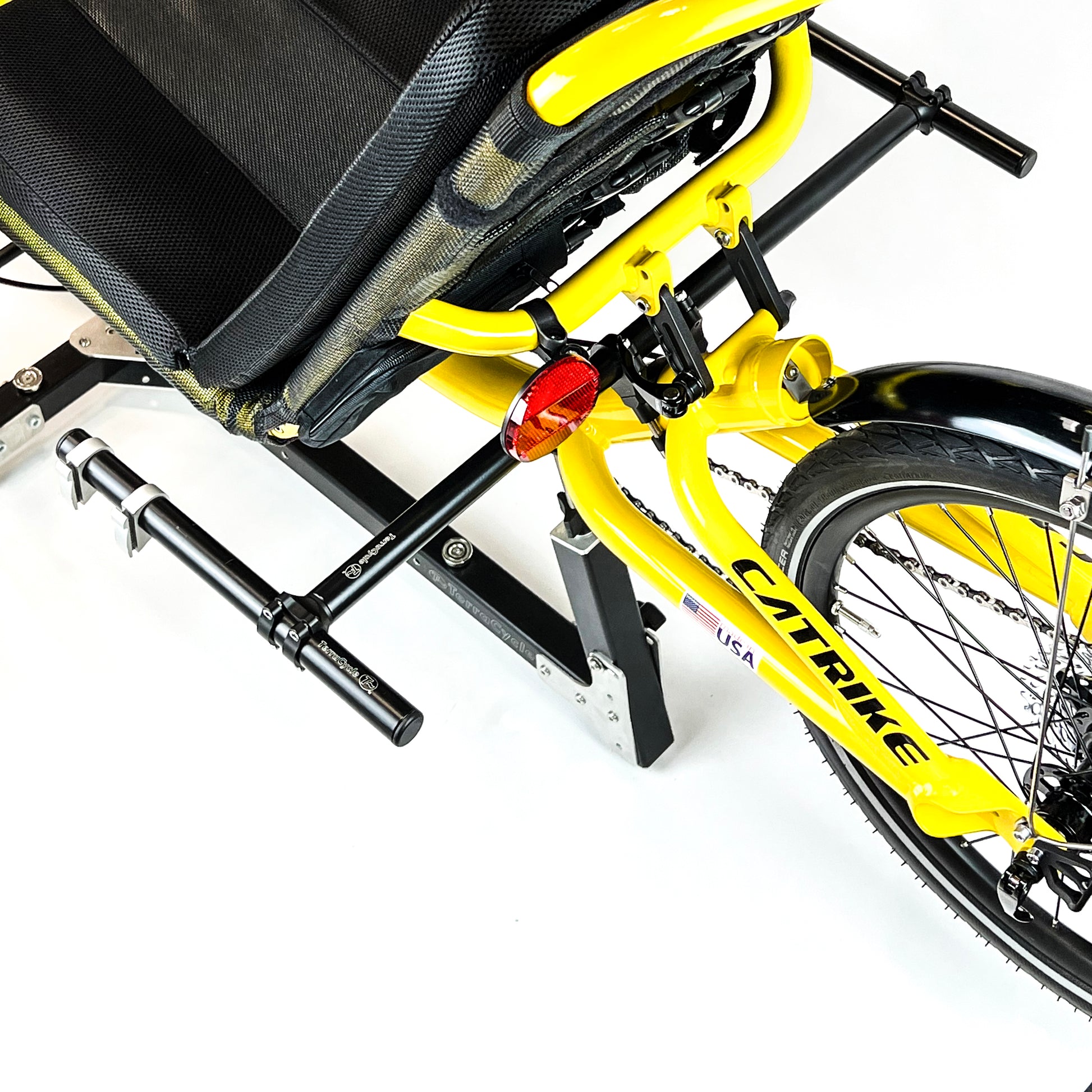 • Fits most Catrikes. There are some limitations on some models, see above or email for details. For instance, the suspended trikes have so much going on with the main tube behind the seat that there is not much room to attach things.