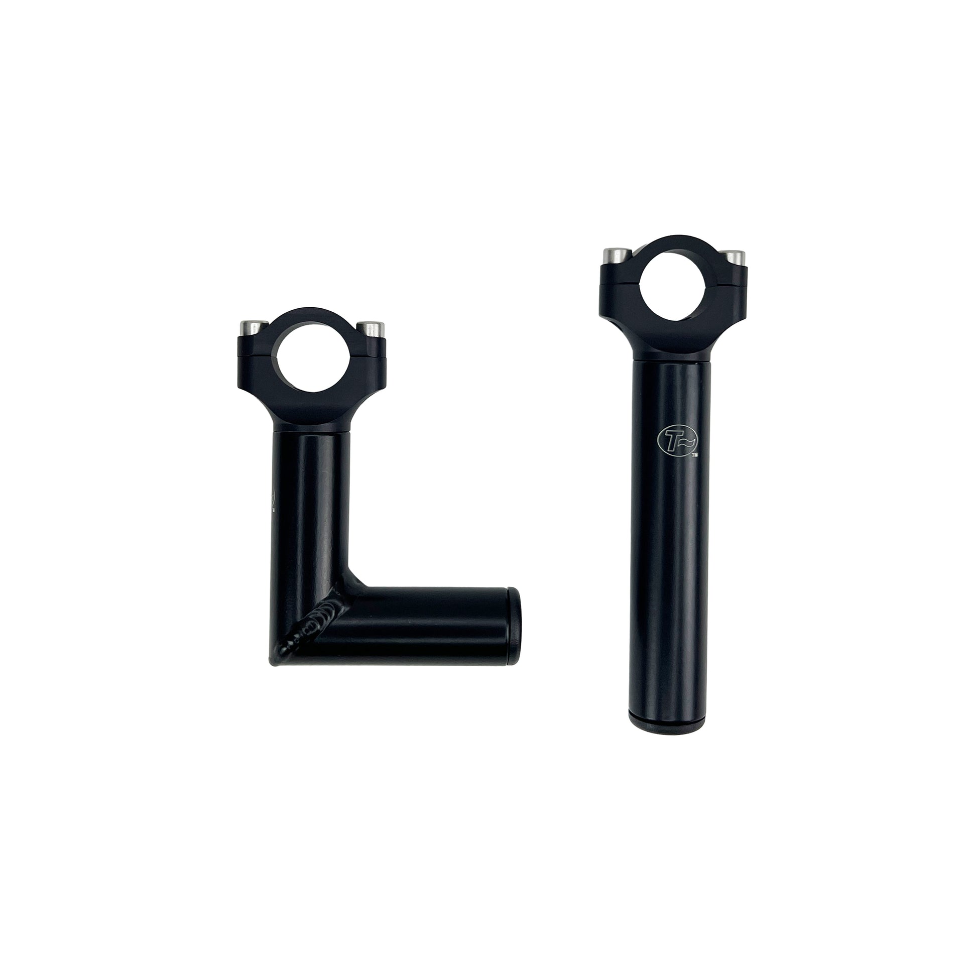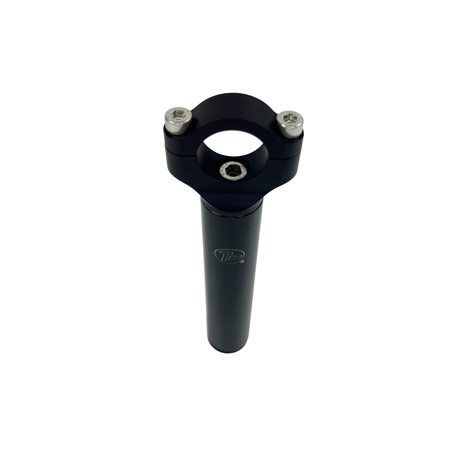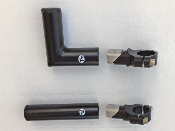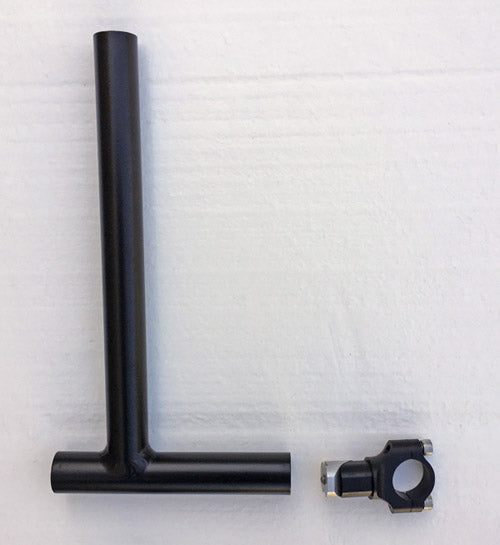 This two part mount consists of a low profile clamp that attaches to your handlebars and an accessory mounting tube that attaches to the clamp, allowing you to easily attach GPS, phone, or mirror! The clamp can go almost anywhere- all it needs is 1/2 inch (12mm) of straight handlebar and you can fit it in. The accessory mounting tube can be all sorts of things. Our standard options are a straight tube 4 inches (101mm) long or a 90 degree L that measures 1.75 inches (45mm) along the inside of the legs. Both are 7/8 (22.2mm) diameter and hollow, so standard handlebar accessories can fit on the outside, and things like mirrors can fit on the inside.