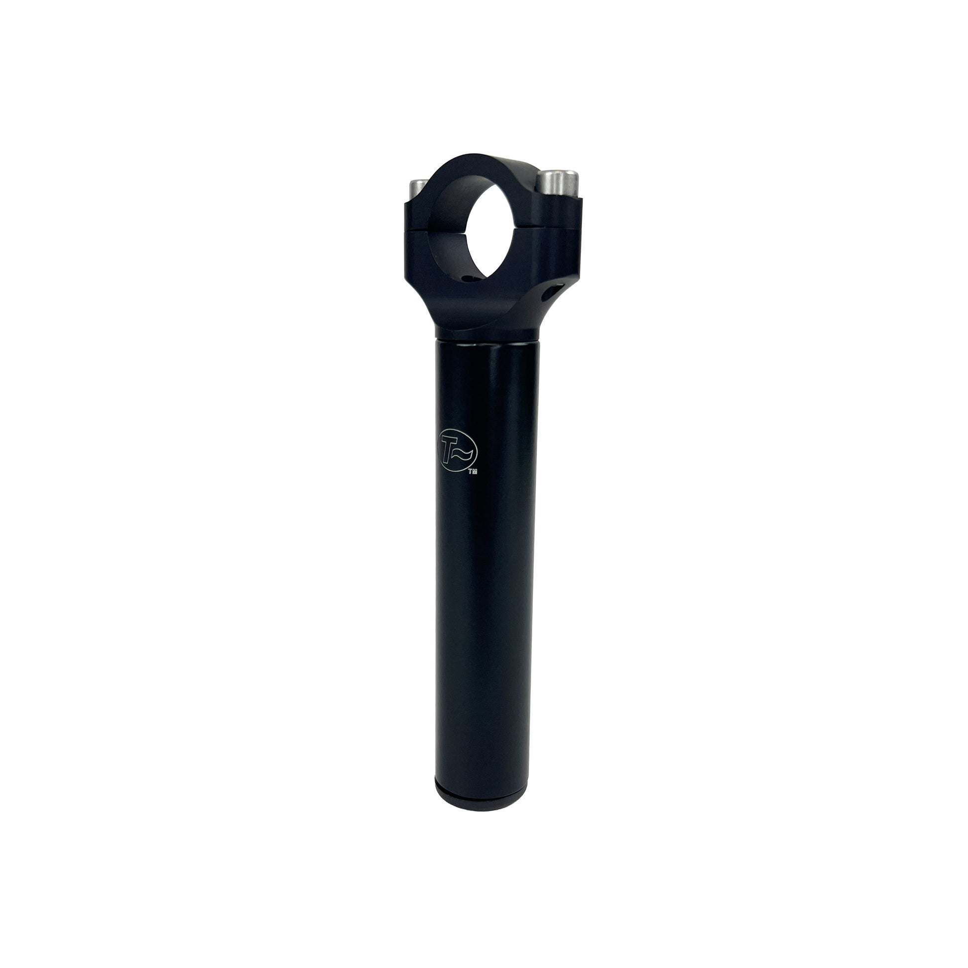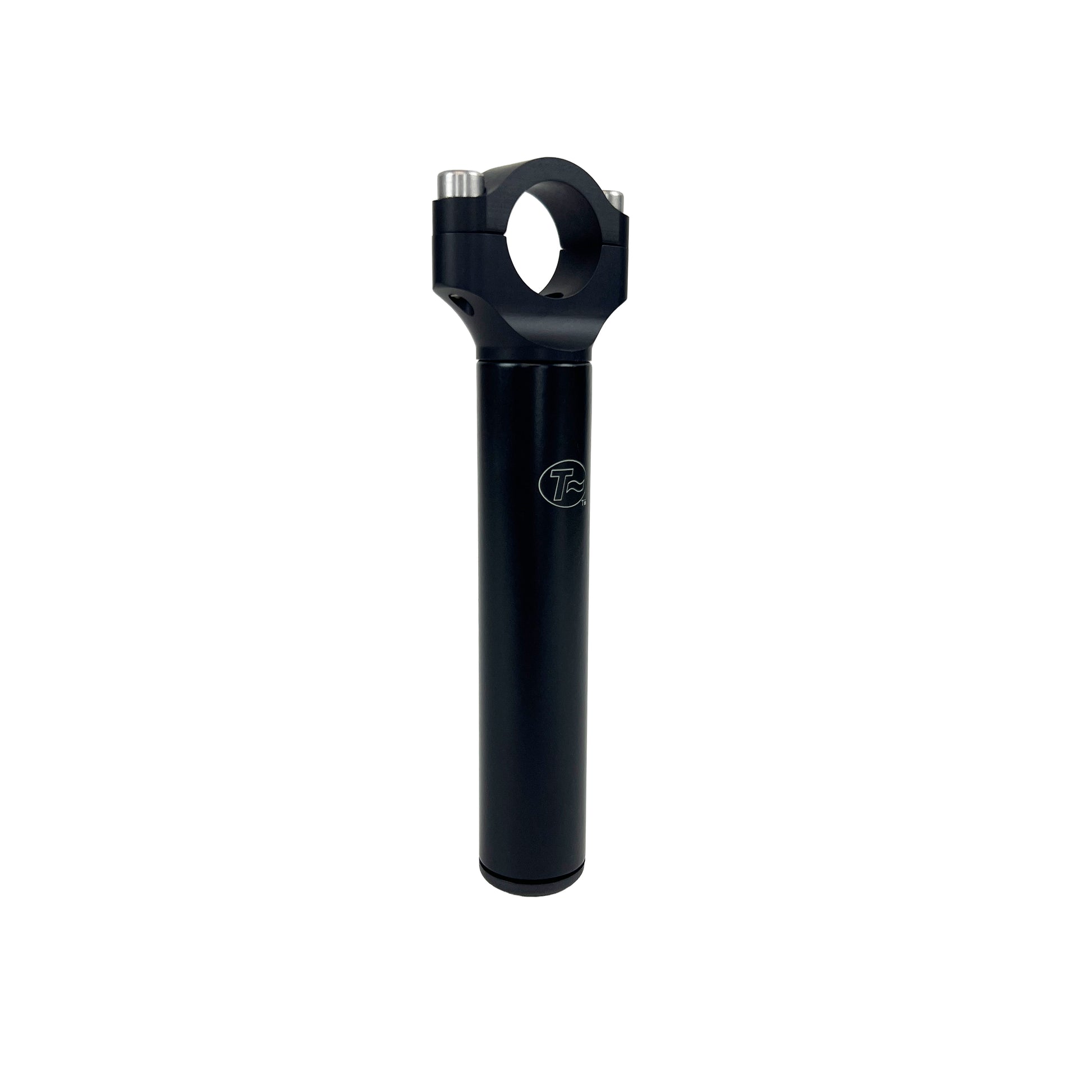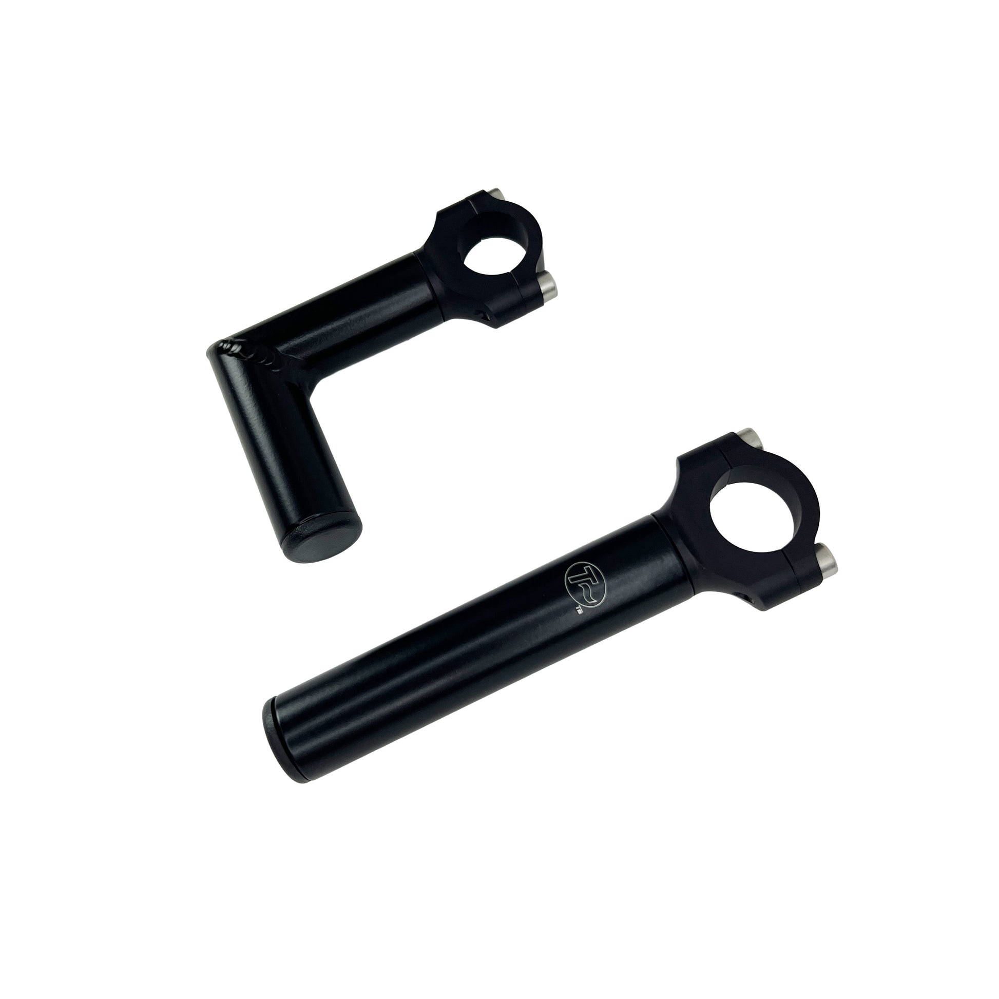 This two part mount consists of a low profile clamp that attaches to your handlebars and an accessory mounting tube that attaches to the clamp, allowing you to easily attach GPS, phone, or mirror! The clamp can go almost anywhere- all it needs is 1/2 inch (12mm) of straight handlebar and you can fit it in. The accessory mounting tube can be all sorts of things. Our standard options are a straight tube 4 inches (101mm) long or a 90 degree L that measures 1.75 inches (45mm) along the inside of the legs. Both are 7/8 (22.2mm) diameter and hollow, so standard handlebar accessories can fit on the outside, and things like mirrors can fit on the inside.